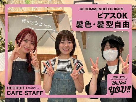 仕事内容 【ホールスタッフのお仕事】 ・席へのご案内 ・注文取り ・料理運び など まずは明るい挨拶ができればOK! 他のスタッフと協力しながら、 お客様にとって居心地の良い空間を 一緒に作っていきましょう! 【未経験でも安心のワケとは?】 先輩達の多くが未経験スタート! 初めてで不安...な気持ちがよ~くわかります。 だから、挨拶の基本~メニューまで 優しく丁寧に指導するのはもちろん、 お仕事中も先輩スタッフが近くにいて 困った時はすぐフォローします! 【一緒に働くスタッフは?】 系列店も含め、10代,20代,30代,40代の 学生、フリーター、主夫・主婦パート活躍中! 初めてのアルバイトはもちろん、 レストラン,カフェ,喫茶店,居酒屋などの 飲食店経験者、ゲーム・アミューズメント施設, カラオケ店などの接客経験者歓迎! 【嬉しいメリット多数あり!】 \お給料+αの魅力をCHECK!/ *従業員割引あり(20%OFF) *食事補助・まかないあり *正社員登用あり *髪型・髪色自由 *ピアスOK 【今までのコラボ実績】 https://www.sld-inc.com/collabo 【kawara CAFE&DINING】 ウォールアートやミラーボールが彩る店内で JAZZ・SOULなどのラウンジミュージックが流れるカフェ。 和を基調とした料理やデザート・ドリンクをご提供。 人気アニメやキャラクターとコラボカフェも行うことも! あなたの「推し」に間近で関われるかも!?