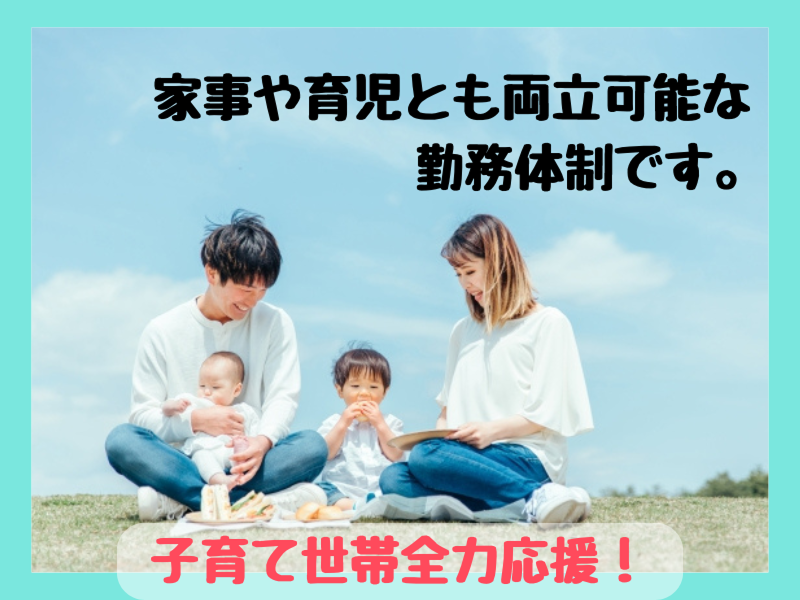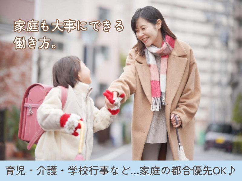 アピールポイント: ✅ 未経験でも始めやすい ・難しい作業は一切ナシ ・家事経験がすぐ活かせる ・安心の研修&丁寧なサポート体制 ✅ 主婦の方に大人気! ・10時スタートで朝の家事後に余裕出勤 ・15時前後には終わるので夕飯準備もOK ・子どもの送迎にも間に合います◎ ✅ シフト自由で調整しやすい ・週1・2日~OK!扶養内も可 ・「この週はお休みしたい」も柔軟対応 ・家族の予定に合わせやすい職場です♪