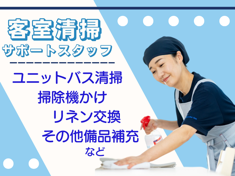 仕事内容: --------------- \こんな方におすすめ♪/ ・家事の合間に働きたい ・誰かの役に立つ仕事がしたい ・体への負担が少ない仕事がいい ・チームで助け合える職場が好き --------------- 仕事内容(未経験でも安心) ✅ シーツ・タオルの交換 ✅ アメニティ類の補充 ✅ 掃除機がけ、テーブル拭き ✅ ユニットバスの清掃(分担制) ◎重いものは基本ナシ! ▶使用済みのシーツ類は 台車へ“ポン”と入れるだけ♪ ◎研修期間中は、 先輩が必ず一緒について 作業を教えるので未経験の方も安心です。 また日本語での挨拶や受け答えができれば 問題ありません。 【応募方法】 ✨直接採用担当とお話ししたい方 →電話での応募大歓迎! 092-739-1045 までお気軽にお問い合わせください! ✨【応募】ボタンから応募の方 →エントリー後、担当者からご連絡差し上げます。 ご連絡が取れる 電話番号またはメールアドレスの 記載をお願いします。 的確な指示とサポートで、 安心して始められる環境です。 あなたのご応募をお待ちしています!