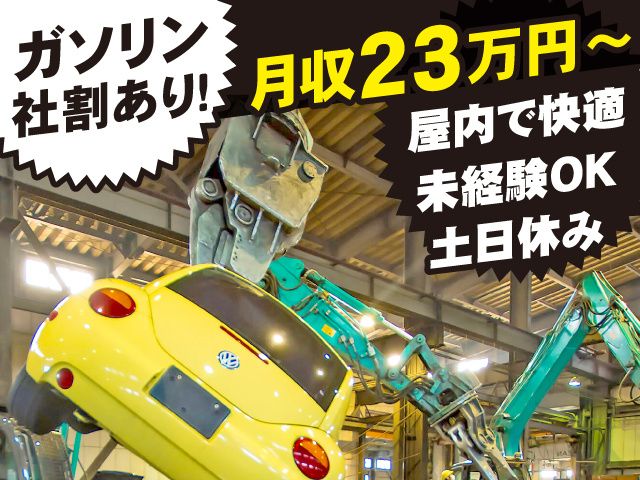 【普通自動車免許があればOK】未経験からでも重機で車を解体してみませんか?屋内での快適環境/土日休み
