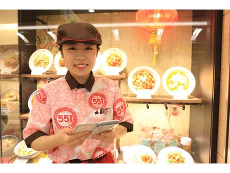 お仕事内容 551蓬莱 関西空港店でのレストランホールスタッフ大募集(アルバイト・パート) 店舗内のテーブルセッティング、お客様のご案内、オーダー、配膳、レジ、テーブル片付け等のお仕事です。 ほとんどのスタッフが未経験からスタートしていますが、 難しいお仕事ではありませんし、 先輩が丁寧に教えますので安心して勤務いただけます。 全国の方に愛される蓬莱の豚まん。 お店には関西の方はもちろん、全国の都道府県や海外からの旅行客さんなど、様々な方がいらっしゃいます。 是非、あなたの笑顔で「551蓬莱」の美味しい豚まんをお客様に届けて下さい! ◆勤務店舗が多数ありますので、自宅から一番近い店舗など他の店舗の紹介も可能です。