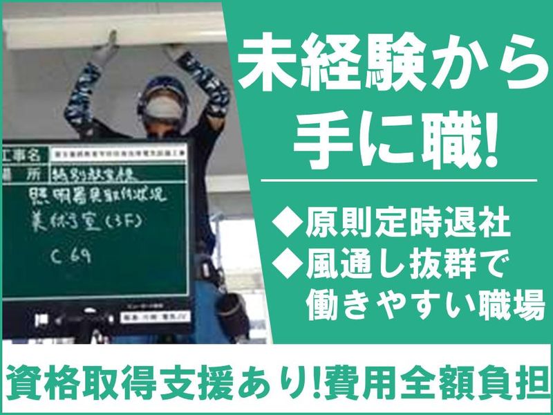 求めている人材 \無資格&未経験からの挑戦を応援します/ 【 第二新卒歓迎!再スタートもサポート 】 * 新しいことにチャレンジしませんか? * 【必須】普通自動車免許(AT限定可能) < こんな方におすすめ > ・一生モノの技術を身に付けたい ・国家資格を取得したい ・電気に関わる仕事に興味がある ・働きやすさに注力する会社で 腰を据えて長く働きたい 《 未経験者歓迎! 》 *学歴不問/経験不問 *正社員を目指すフリーター歓迎 *職種・業界未経験歓迎 *異業種からの転職も歓迎 《 無資格歓迎!資格不問! 》 必要資格の取得支援充実! 取得費用は会社で全額負担します。 スキルUPもしっかりサポートします! - ・ - ・ - ・ - ・ - ・ - ・ - ・ - ・ - ・ - \ こんな仕事に興味がある方歓迎 / 電気工事・エアコン取付・エアコン工事 通信工事・設備管理・電気施工管理 消防設備士・メンテナンスなど