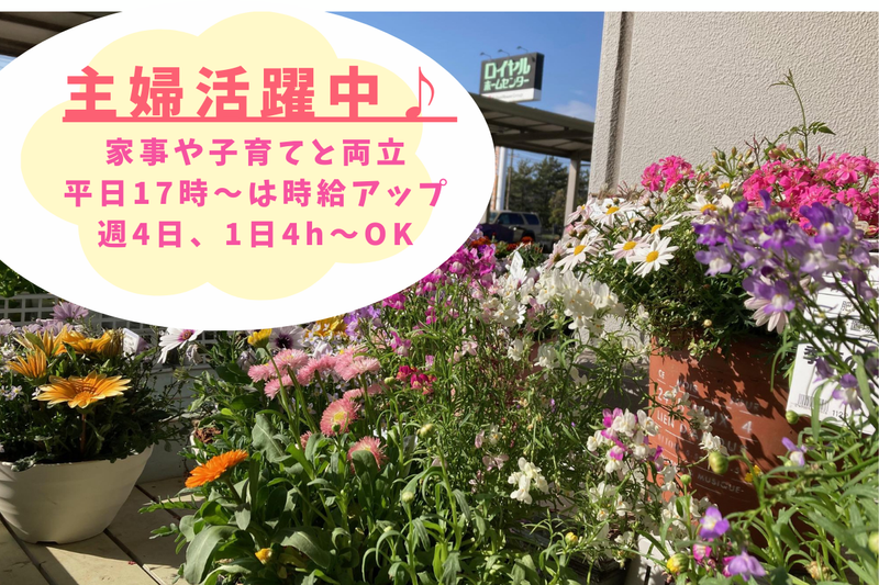 求めている人材 ◆未経験大歓迎 ◆ブランクのある方OK << 幅広く活躍中 >> ✨家事優先で働きたい主婦(夫)さん ✨子育てと両立したい主婦(夫)さん ✨子育ての落ち着いた主婦(夫)さん 40代・50代のスタッフの方が 多く活躍しています! ~~~~~~~~~~~~~~~~ - 働き方の融通が利きます! - 勤務曜日は固定していません! 最低週4日以上、週5日勤務歓迎! 1日7h勤務でしっかり働けます! 空いている日を有効活用! *主婦(夫)さんでしたら お子さんが学校に行っている間に。 - 好きを仕事に! - DIYが好きな方でしたら 仕事に行くのがワクワクしちゃう! そんな職場だと思います。 様々な商品が揃っているので 初めて見る商品や 新しい発見もきっとあるはずです! 「これすごい使い勝手良かったよ!」 など、スタッフ同士でも 商品知識の共有があったりと 働きながら自分の好きな事の知識が広がって 楽しく働ける事間違いなし! 難しいお仕事や作業はないので 経験や知識がなくても 無理なく始められて 長く続けられる環境です! <こんなワードで検索された方が活躍中> パート/アルバイト/正社員/ 主婦パート/販売/販売スタッフ/ アルバイト・パート/中高年/ 接客/接客販売/パート主婦/品出し/ 品出しアルバイト/品出しスタッフ/ スーパー/ドラッグストア/ スーパー品出しアルバイト 受付/電話対応