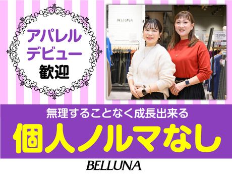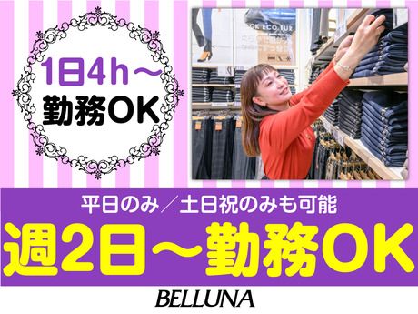 仕事内容 ベルーナのアパレル店舗スタッフ ■■ 通販ベルーナの実店舗 ■■ アルバイト・パートアパレル販売スタッフの募集! 主婦パート・学生・フリーター活躍中♪ 高校生OKアルバイト! <未経験OK♪> 週2日からOK!扶養内勤務OK! 家事や育児終わりに勤務OK◎ 接客販売が初めての方も大歓迎! 個人ノルマなし!髪色自由&ネイルOK♪ 履歴書不要で面接OK! 平日のみ相談可・土日のみOK! お試し短期から始めて長期への切り替えもOK!即日勤務OK! ―――――――――――――― 【仕事内容】 ★販売・接客 ★商品陳列・整理 ★品出し・補充 ★清掃 ★レジ応対 など ※お客様に試着やお探しの商品のご案内もあります。 先輩スタッフのフォローがあるので安心◎ お店で活躍している方の約8割が未経験からのスタート! 自分で考えたコーディネイトをSNSで発信する事もできちゃう☆彡 ★面接時のPOINT★ 【面接1回】で完結♪♪ 入社日は相談の上、決定します。ご希望をお聞かせください◎ <面接での質問内容をご紹介>※店舗により多少異なります ・カンタンな自己紹介 ・なぜBELLUNAにご応募いただいたか ・今までどんなお仕事を経験してきたか(もちろんアルバイトデビューもOK♪) ・ご希望のシフトや出勤日数・曜日など ・いつから働きたいか ◎面接といっても、堅苦しくない面談のようなスタイルで実施しますので、緊張せずにご参加ください! ◎履歴書不要!面接にお越しいただいた際に、アンケートシート(5~10分)の記入をお願いしています♪ ※アンケートシート(5~10分)+面接20~30分程度を予定しています!