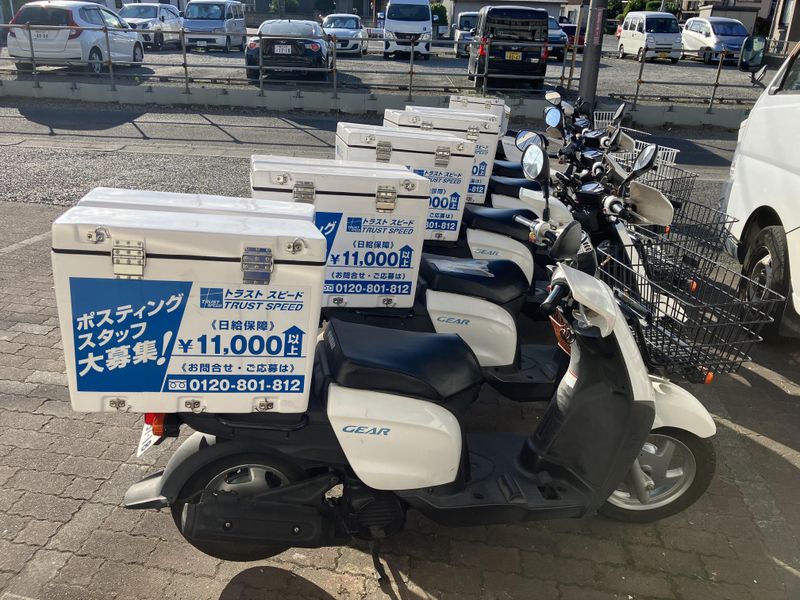 職場環境 *スキマ勤務×何回~何日でも大歓迎!* ★バイクを運転⇒ポスト投函のカンタン作業! ★シフトは希望制!稽古やライブに合わせてシフト調整OK♪ シフトカットほぼなしで安定収入♪ ★一人作業だから自分のペースで進められる! ★日払い・週払いもOK! 喫煙所:喫煙所あり(屋外)