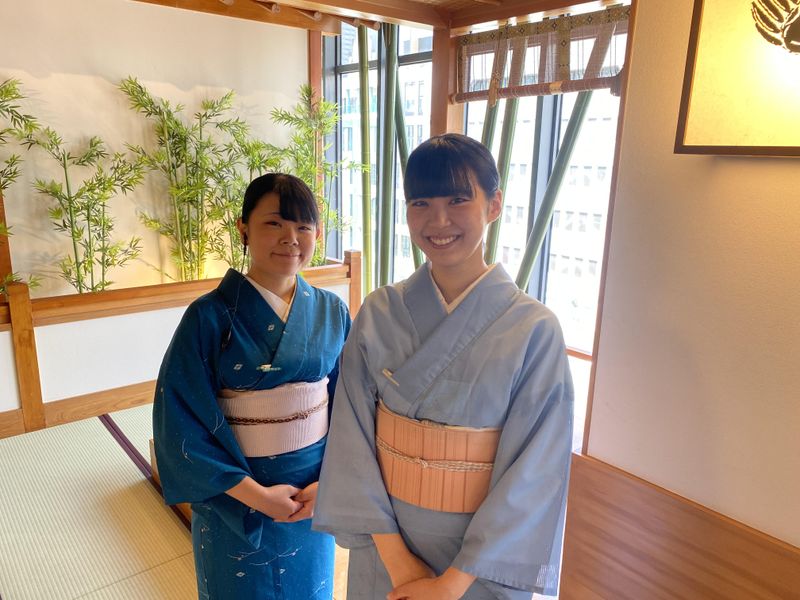 職場環境 ✨こんな方にピッタリの職場環境✨ ❏落ち着いた雰囲気のお店で働きたい! ❏着物が好きだから 自分で着られるようになりたい! ❏綺麗な所作を身につけたい! ❏英語スキルを活かして働きたい! …など♪長期で働くスタッフが 多数在籍しており、定着率も抜群です!