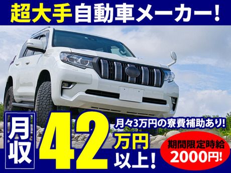 仕事内容 【お仕事内容】 ダイハツ工業でのお仕事です。 軽自動車・小型自動車の製造 自動車本体の組立ライン作業がメイン業務となります。 ▼作業内容について詳しく・・・ ・自動車本体に座席シート周りの部品の組み付け ・その他車体の部品組み付け ※別の部品を組み付けしていただく場合もございます。 ☆重たい部品は機械が補助してくれますので、直接持ち上げることはありません! ☆工場未経験・派遣が初めての方も歓迎!学歴・職歴不問!研修もございます◎ ☆フォロー体制◎工場でのお仕事が初めての方でも、安心安全のお仕事です! ☆20代・30代・40代の男女活躍中です! ☆配属先について ・組立作業以外(ピッキング、塗装、エンジン組立等)の配属もまれにございます。 ・配属先は派遣先企業にて決定いたします。 【手厚い研修あり!】 今年より新しく開設された弊社の研修所で 1.5日間の研修があり、 その後現場に配属となります! ☆研修時間は8:15~17:10となります 1日しっかり座学研修を受けていただけます。 製造未経験、自動車業界が初めての方も安心してお仕事スタートできます◎ ★★今だけの入社特典!嬉しい6つの入社特典★★ 2026年3月末までにご入社の方限定! 嬉しい6つの入社特典をご用意しています◎ (1)【時給アップキャンペーン☆】 時給300円アップの特典がございます! 時給1,700円⇒時給2,000円! ※6ヶ月に一度(4月・10月)、手当の見直しで金額が変動する可能性があります。 (2)【食事補助あり!】 毎月、工場内でのお食事利用10,000円分を補助いたします! (3)【車通勤手当】 2ヶ月毎に月末在籍で20,000円を支給いたします! ※自宅・寮からの車通勤どちらも対象となります (4)【寮費補助あり!】 月々30,000円の寮費補助がございます! 家賃のご本人様負担額の目安は、約15,000円~25,000円となります。 ※ご案内する寮により、家賃負担額は異なります (5)【寮駐車料全額補助】 支給上限額5,000円までとなります。 (6)【赴任パック】 さらに赴任特典として、赴任パック(食事補助)があります◎ ※各規定有 この機会にぜひご応募ください☆ 【ここがポイント】 ●月収42万超え可能でしっかり稼げます◎ ●土日休みで家庭や趣味の時間も大切にできます! ●友達同士での応募OK! ●マイカー通勤OK!無料駐車場完備◎ 【即入寮OK!家賃補助ありの寮完備♪】 遠方にお住いの方にもオススメ! 「三雲駅」から車で15分程度の場所に寮を構えています◎ 30,000円の寮費補助+寮の駐車場代全額補助の特典がございます! ※規定有 【寮の詳細】 ・間取り:1R ※寮の空き状況により異なります ・家賃:4万円~5万円→30,000円の寮費補助あり!(※規定有) ・光熱費:自己負担(自己精算) ・駐車場完備(上限額 5,000 円まで全額補助) ・備品:リース可 ▼備品について テレビ、洗濯機、冷蔵庫、ガスコンロ、 エアコン、布団、照明器具、カーテン、 洗濯機ホース、電子レンジ →全てレンタルで月額8,740円 ▼寮→工場まで 車、自転車、徒歩でご通勤いただけます! ▼寮の周辺環境 コンビニ:徒歩で5分 スーパー、ドラッグストア、100円ショップ、ホームセンター:車で10分 病院:車で15分 寮にはレンタル備品がありますので、 新しく買い揃える手間なく新生活を始められますよ♪ この機会に是非ご応募ください☆ ≪前払い制度使えます≫ ご入社後の稼働分で前払い可能です!(規定有) しかも、アプリでカンタンに申請できちゃう! 【紹介キャンペーン現金1万円!】 お仕事を探している方をご紹介いただき入社していただくと特典として現金1万円支給♪ 詳しくは採用担当まで。
