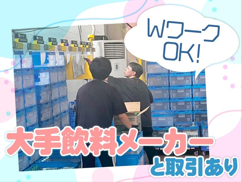 仕事内容 ⋄✧⋄⋆⋅⋆⋄✧⋄⋆⋅⋆⋄✧⋄⋆⋅⋆⋄✧⋄ \週3日~OK!平日のみ!/ 誰でもできるカンタン作業! 清涼飲料水の仕分けスタッフ ⋄✧⋄⋆⋅⋆⋄✧⋄⋆⋅⋆⋄✧⋄⋆⋅⋆⋄✧⋄ \腰の負担もナシ♪/ 倉庫内での清涼飲料水の仕分け作業を お願いします。 ペットボトル飲料を1本ずつ専用の箱に入れるだけ! 高さ調整のできる台車があるので、 腰への負担も心配ありません◎ 男性・女性ともに活躍中! 繰り返し作業が中心なので、未経験の方でも すぐ慣れていただけます★ 学生さん・主婦さん・シニアの方も活躍中✨ 幅広い世代が働きやすい職場です♪ 「コツコツ作業が好き」 そんな方にピッタリのお仕事です◎ ◆1日の流れ  ̄ ̄ ̄ ̄ ̄ ̄ ̄ 出社して勤務開始(天候に左右されない屋内作業) ↓ 飲料水を1本ずつ箱詰め(台車ありで安心♪) ↓ お昼休憩 ↓ 午後の作業スタート ↓ 業務終了!(残業ほぼなし) ◆勤務条件  ̄ ̄ ̄ ̄ ̄ ̄ ・8:30~17:30(実働8時間/休憩60分) ・平日のみのシフト制 ・残業基本なし◎ ・車、バイク、自転車通勤OK!✨ ◆給与  ̄ ̄ ̄ ̄ 時給1300円~(別途交通費支給) \こんな方にピッタリ✨/ ✅ コツコツ作業が得意な方 ✅ 平日のみ働きたい方 ✅ 腰への負担が少ない軽作業を 探している方 ✅ 未経験から安心して始めたい方 ◆会社について  ̄ ̄ ̄ ̄ ̄ ̄ ̄ ̄ 当社は創業60年以上のマルノウチグループの一員。 大手飲料メーカーとの取引をはじめ、 300名を超えるスタッフが活躍中です。 「ここで働いていてよかった」 と思っていただけるように、 安心して働ける環境づくりに力を入れています。 気になった方はぜひお気軽にご応募ください♪ あなたと一緒に働ける日を楽しみにしています◎