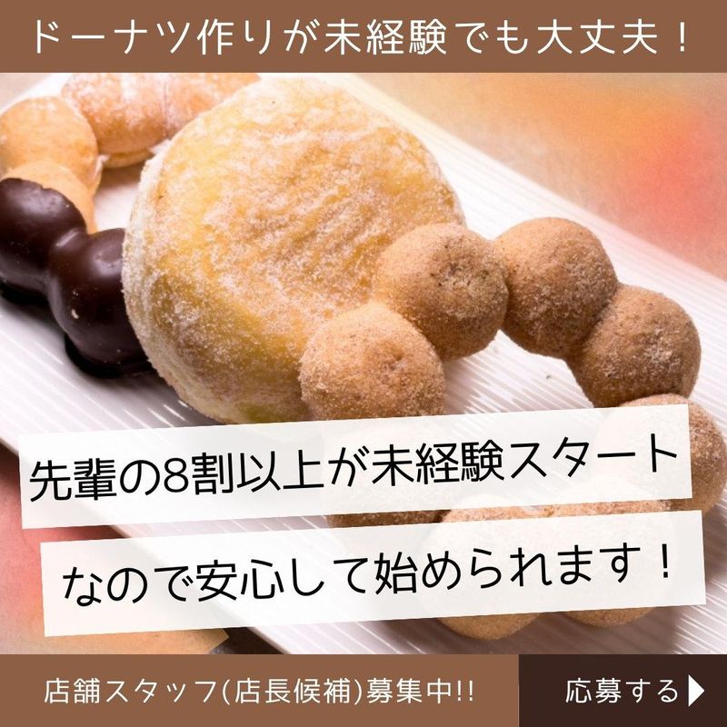 求めている人材 ✅未経験・第二新卒歓迎! ✅飲食業界に興味がある方 ✅人と接する仕事が好きな方 ✅将来は店長やエリアマネージャーを目指したい方 ✅安定した企業で腰を据えて働きたい方 ・―・―・―・―・―・―・―・―・―・ 日常で利用していたり、 昔からの夢であったり…。 「飲食店で働きたい!」という 想いを持ったことはありませんか? 「将来は店長になりたい」 「ゆくゆくはマネージャーを目指したい」 そんな意欲がある方を歓迎します!! ⭐20代・30代前半の若手スタッフ活躍中! ・―・―・―・―・―・―・―・―・―・ 【こんな方にも是非】 ミスタードーナツでは、毎日手作りで ドーナツを作っていますので、 ”お菓子を作るのが好き” といった方も大歓迎です♪ 覚えるのが大変なイメージが あるかもしれませんが、基本は 4種類程度なので始めやすいです! ・―・―・―・―・―・―・―・―・―・ ⭐無資格・未経験から挑戦したい方 ⭐接客販売のお仕事に興味がある方 ⭐ステップアップできる環境で働きたい方 ⭐地元でお仕事を探している方 ⭐腰を据えて長く働きたい方 ⭐プライベートも大切にして働きたい方 ⭐将来、自分のお店を持つ夢がある方 そんな方も歓迎いたします!! ・―・―・―・―・―・―・―・―・―・ ✨様々な前職からも大歓迎です!✨ 販売、飲食店、レストラン、スーパー、 居酒屋、フードコート、カフェ、 コンビニ、ファーストフード、 パティシエ、調理師、料理人、 接客業、ホテル、フランチャイズ、 イベント、マネージャー、 スーパーバイザー、レジ、ケータリング、 デリバリーなどなど! <この原稿はこちらのキーワードで検索されています!> ✅異業種からの転職応援 ✅若手活躍応援企業 ✅第二新卒積極採用中 ✅正社員デビュー歓迎 ✅20代活躍中 ✅キャリアアップ採用も可能 ✅店長へのステップアップもスピーディ ✅フリーターから正社員へ ✅業界経験なくてもOK ✅営業職、販売職、接客業など 人と接する仕事が好きだった方も大歓迎 ✅やりがいのある仕事 ✅研修制度充実 ✅若手店長在籍