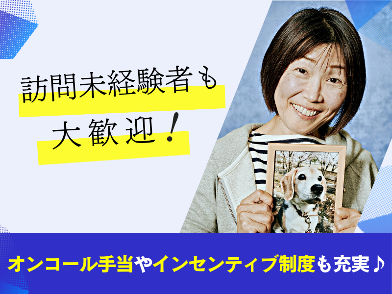 【保険制度】 雇用保険、労災保険、健康保険、厚生年金 待遇・福利厚生 【福利厚生】 ◇ 交通費支給(規定あり) ◇ 自転車通勤、マイカー通勤可 ◇ 社用車貸し出しあり ◇ ユニフォーム支給あり ◇ 時短勤務制度 ◇ 育児支援 ◇ 資格取得支援・手当てあり ◇ 昇格・昇給あり ◇ 雇用保険 ◇ 厚生年金 ◇ 労災保険 ◇ 健康保険 ◇ 紹介報酬制度 ◇ キャリアアップ制度 ◇ 推薦図書制度 ◇ 訪問手当(月71時間目以降の訪問から1時間あたり4,000円支給) ◇ オンコール手当(平日待機8,000円、土日祝21,000円) ◇ 退職金制度有