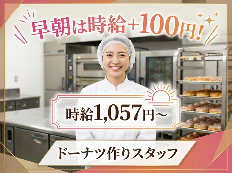 ⭐ドーナツ作り!✨早朝は時給+100円⏩休憩ドーナツ無料