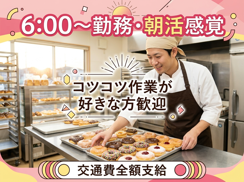 求めている人材 ⭐未経験歓迎 ⭐飲食・製造経験不問 ⭐コツコツ作業が好きな方 ⭐早朝勤務(6時~)が可能な方 ⭐安定してシフトに入れる方 パン製造・ベーカリー・お菓子作りなど 食品製造の経験がある方も歓迎します✨ ドーナツづくりは覚えるまで少し時間がかかるため、 丁寧に作業を覚えていける方を歓迎しています。 フリーターの方や、 朝の時間を有効活用して働きたい方にもおすすめです⭐