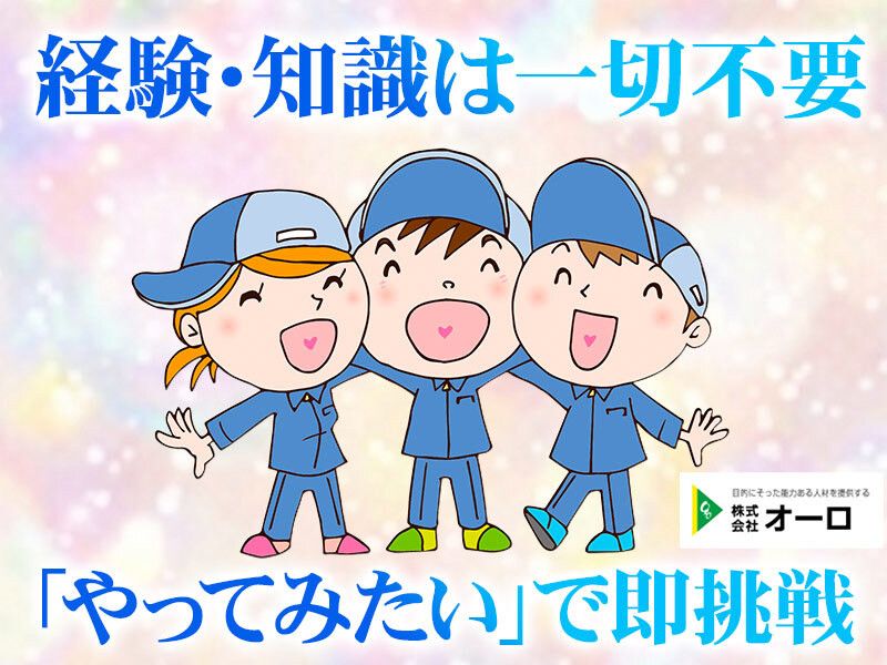 【アピールポイント】 程良く身体を動かせる、仕分けスタッフを募集! 未経験でも安心、丁寧に教えます。 ほとんどの方が未経験での入社です。 \私たちオーロのここが評判です/ まずは工場見学で、実際の職場を確認。 入社後も担当者が寄り添いながら定期サポートします! ■未経験OK ■駅チカ ■車通勤可