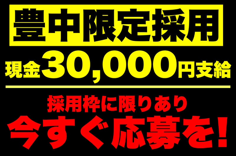 アピールポイント: <<⭐️⭕30,000円プレゼント中⭕⭐️>> . . . 転職活動でもうカツカツ。 そこの「アナタ」に朗報です!!! 当社は【スタートダッシュキャンペーン】実施中⭐️ 当社を選んでくれたアナタだけに、 現金で30,000円!!!そのままお渡しいたします。 ※詳細は面談で! ※対象者には限りがあります。 〜・〜・〜・〜・〜・〜・〜・〜・〜・〜・〜