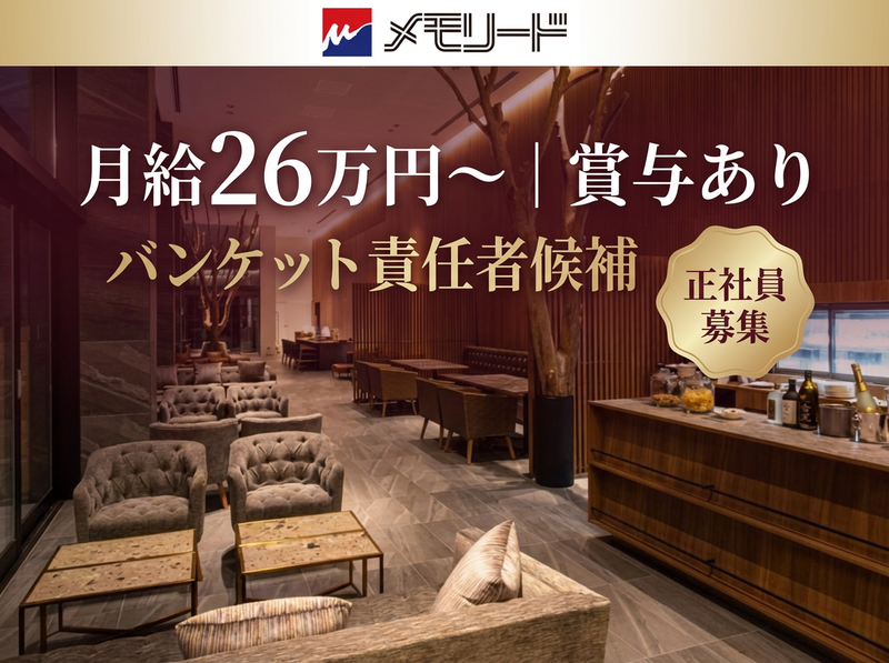 仕事内容 ⭐このポジション、正直“かなり重要”です。 披露宴をスムーズに進行させる中心人物。 料理提供だけでなく、会場全体を動かす役割です。 【仕事内容】 このポジションは、ただ料理を運ぶ仕事ではありません。 披露宴という一生に一度の舞台を、裏側から成功へ導く中心人物です。 新郎新婦が安心して笑顔でいられるのは、 会場がスムーズに動いているから。 その“要”になるのが、あなたです。 ⏩ バンケットサービス業務 ・料理・ドリンク提供 ・会場セッティング ・進行に合わせたサービス調整 一皿の出すタイミングで、 会場の空気は変わります。 そのリズムをつくる役割です。 ⭐ 披露宴の責任者ポジション ・アルバイトスタッフへの指示出し ・当日の動線・段取り管理 ・急な変更やトラブルへの判断 ・プランナーとの最終確認 会場が少し乱れた瞬間に、 誰よりも先に気づき、整える。 「今日、本当に最高でした」 その言葉は、新郎新婦だけでなく、 あなたの判断と動きに対する評価でもあります。 自分が動くだけではなく、 チームを動かし、空間を動かす立場。 任されるからこそ、面白い。 任されるからこそ、成長できる。 ここで積めるのは“サービス経験”ではなく、 現場を回す力です。