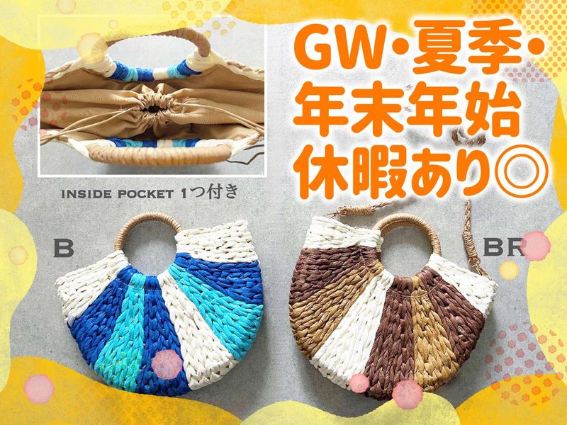 仕事内容 ~ここがポイント~ ◆経理事務がメインですが出荷作業もあって 座りっぱなしにならないお仕事♪ ◆経理・事務の経験者歓迎♪ ◆週3~4日、フルタイム勤務で しっかりお仕事したい!そんな方大歓迎! ◆社内商品割引あり◎ ストールや帽子などの 服飾雑貨を扱う当社で 商品の経理事務と生産管理業務を して下さる方を募集します! PC作業だけでなく、 入荷した商品を仕分けたり、 在庫チェックをしたりと 適度に身体を動かしながら働けます◎ 【仕事内容】 主に経理事務をお任せします! たまに生産管理業務も していただくことがあります。 <経理事務> ・伝票処理や管理 ・請求書の処理 ・受注書等のPC入力 ・電話応対(営業への取次程度) ・その他付随業務 <生産管理業務> 商品の出荷準備など、 ちょっとした軽作業です◎ ==================== 嬉しい待遇もやりがいも手に入れられる! ==================== 当社ならではの魅力をご紹介します! ◎スキルや頑張りに応じて寸志が出ることあり ⇒あなたの頑張りをきちんと評価! 前向きに仕事に取り組めます! ◎自分の仕事への達成感と喜び ⇒あなたが決めた納期が スムーズにいったときの快感や 関わった商品が店頭に並んでいる姿を 見たときの喜びを味わえます! ◎少人数だから働きやすい環境 ⇒男女10名の会社で職種関係なく 協力できる人ばかり! 穏やかな人が集まっているので 居心地の良さはバツグン! また、経験問わず仕事は イチから丁寧にお教えします◎