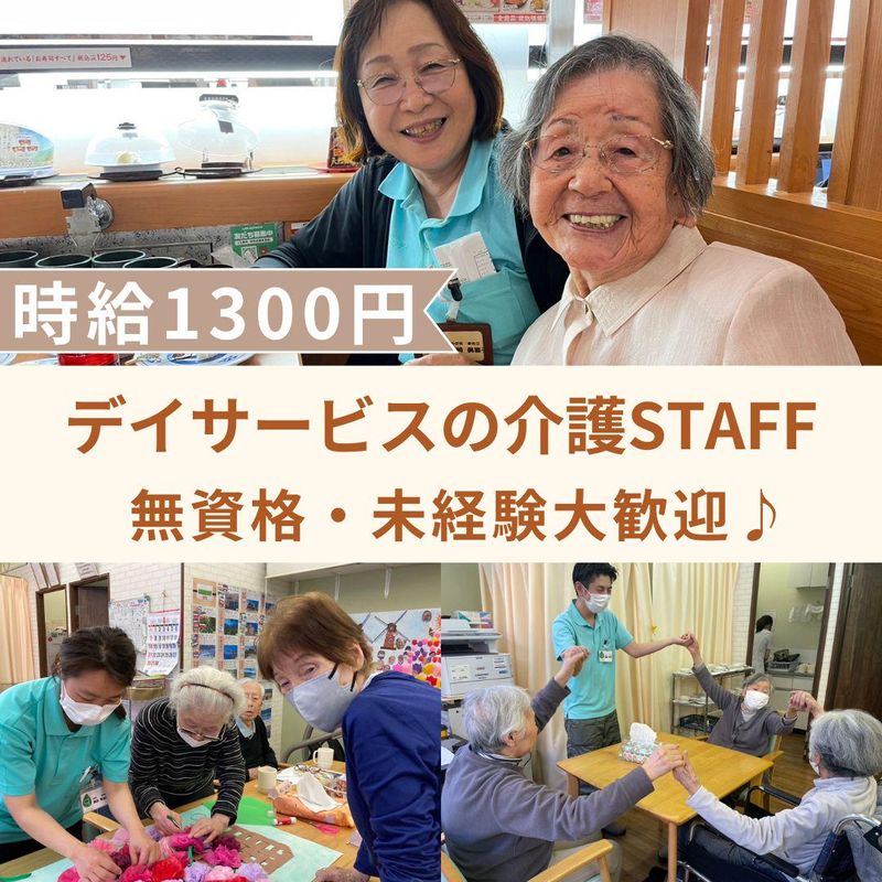仕事内容 【Point✨】 ✅無資格・未経験大歓迎! ✅髪色・ネイル・ピアス自由! ✅週2日~1日4時間~勤務OK ✅定員18名の少人数制 【施設について!】 当施設は、定員18名の 少人数制デイサービスです。 利用者様一人ひとりに しっかり向き合える環境の中で 介助とリハビリを組み合わせた 新しいスタイルのケアを実施しています。 毎週土曜日には外出型の リハビリイベントも実施! 外食に出かけたり、文化体験を楽しんだりと ミニ旅行”のような体験を通じて 機能訓練の効果を高めています。 スタッフも一緒に 楽しめる内容となっており、 自然と笑顔が生まれる環境が 職場の雰囲気やチームワークの 良さにもつながっています。 その結果としてスタッフの定着率も高く 「長く働きたい!」 と感じられる職場環境が整っています。 【仕事内容】 デイサービスに通う利用者様が、 1日を楽しく・安心して過ごせるように サポートするお仕事です。 介助中心というよりも、 「見守り」や「会話」 「レクリエーションの補助」など、 日常生活に寄り添う サポートがメインです。 【具体的には…】 ・利用者様の送迎(運転または添乗) ・施設内での見守り、話し相手 ・食事やお茶出しなどのサポート ・入浴やトイレの 簡単な介助(できる範囲でOK) ・レクリエーションや 外出イベントの企画・補助 ・リハビリ時のサポートや準備 スタッフ同士で声を かけ合いながら進めるので、 未経験の方でも 安心してスタートできます。 「お話が好き」 「人と関わるのが楽しい」 そんな気持ちがあれば大丈夫! 資格がなくても始められる、 やりがいのあるお仕事です。