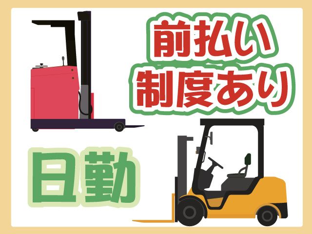 【条件アップしました】週払いもOK! フォークリフト作業が9割/日勤・土日祝休み/午後からの勤務有