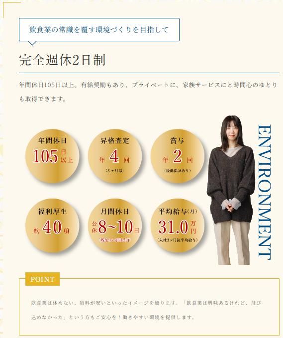 求めている人材 ★飲食のジャンル不問! ★充実した教育制度があります! ★異業種からの転職者も歓迎! ★第二新卒者も歓迎! ★中途入社のハンデなし! \ こんな方歓迎!/ ・イチからスキルを身に付けたい方 ・協調性があり、チームビルディングに ついて思考できる方 ・笑顔でいきいきと コミュニケーションが取れる方 ◎経験者優遇! ・ジャンルを問わず調理経験がある方 ・自分の可能性をさらに拡げたい方 ・接客業の経験がある方 ・店舗運営の経験がある方 など 経験・能力に応じて優遇します。 ブランクがある方も大歓迎!