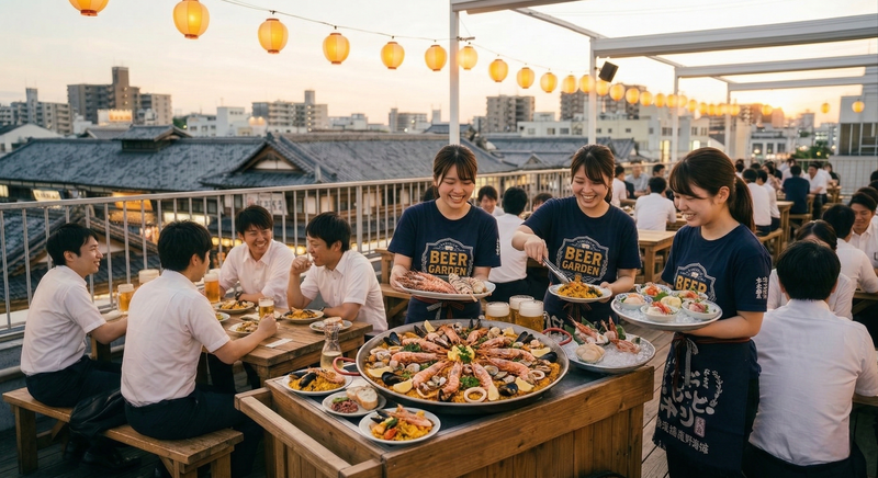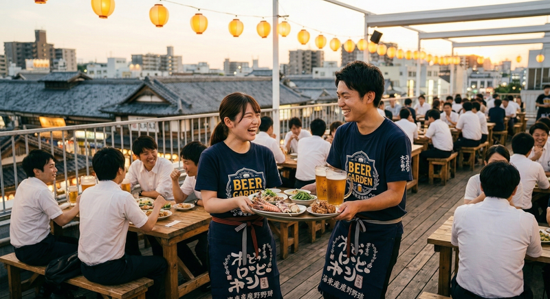ビアガーデンのホールスタッフ