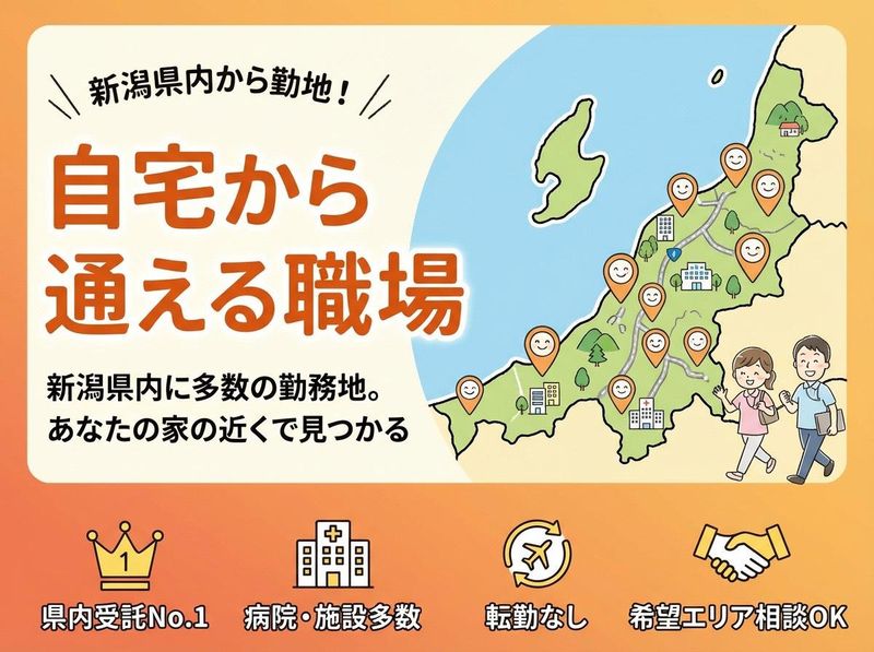 求めている人材 ✅地元で腰を据えて、 栄養士としてキャリアを積みたい方 ✅「食」や「健康」を支える仕事に、 専門性を活かして関わりたい方 ✅献立・発注・衛生管理などを大切にし、 安全でおいしい食事を届けたい方 【必須条件】 ・栄養士免許 【歓迎条件】 ・病院/福祉施設/学校 保育園/社員食堂などでの 栄養士業務経験 ・飲食店、給食施設等での調理経験 ・地元新潟で長く活躍したい方