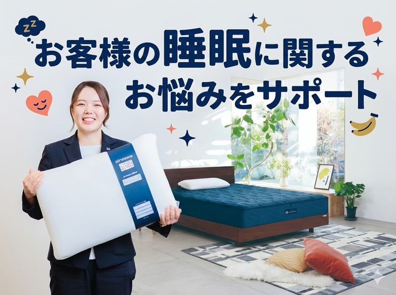 【9割が女性の職場|20代・30代活躍中】寝具のカウンセリング販売職|お客様1人1人に寄り添う丁寧な接客をしたい方のご応募をお待ちしています♪