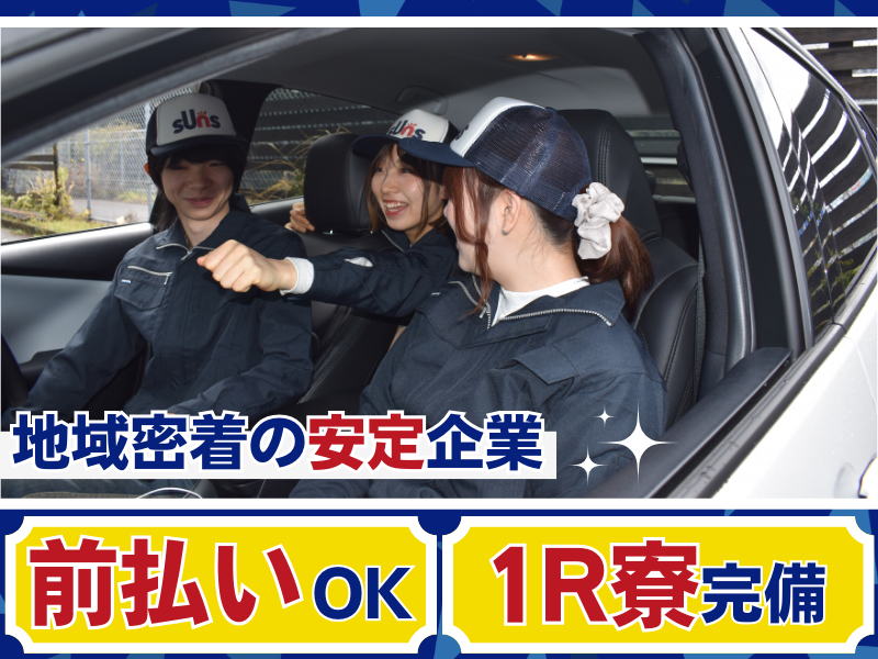 【保険制度】 雇用保険、労災保険、健康保険、厚生年金 待遇・福利厚生 【福利厚生】 【福利厚生】 *社会保険完備 *交通費規定支給 *残業深夜手当あり *制服貸与 *車・バイク・自転車通勤OK(無料駐車場完備) *ワンルーム寮完備(家具家電付/規定あり) *生活費補助制度(規定あり) *資格取得支援制度あり *前払い制度あり(日払い・週払いOK/規定あり) *正社員登用あり *紹介制度あり (1人紹介5万円/規定)