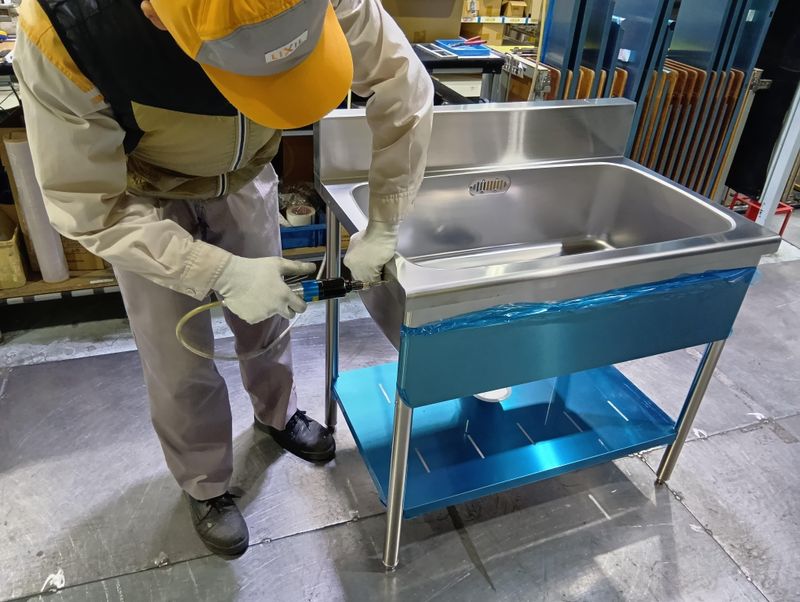 仕事内容 職務詳細案:業務用ステンレスシンクの組立・製造 【仕事の概要】 レストラン、ホテル、学校、病院などの厨房で使用される「業務用ステンレスシンク(流し台)」の組立を担当します。 耐久性が求められるプロ仕様の製品を、各種工具を使って一台ずつ丁寧に組み上げていく「プラモデル作り」のスケールを大きくしたようなお仕事です。 【具体的な業務内容】 1. 工具を使用した組立作業 指示書に従い、ステンレス製の部品を組み立てて製品の形にします。 使用する工具: 電動ドライバー(インパクト)などを使用します。 組立工程: シンク本体(槽)に、脚や棚板などのパーツを取り付けます。 ビスを使って、ガタつきがないようしっかりと締め付け(締結)を行います。 DIYが好きな方であれば、すぐに慣れていただける作業です。