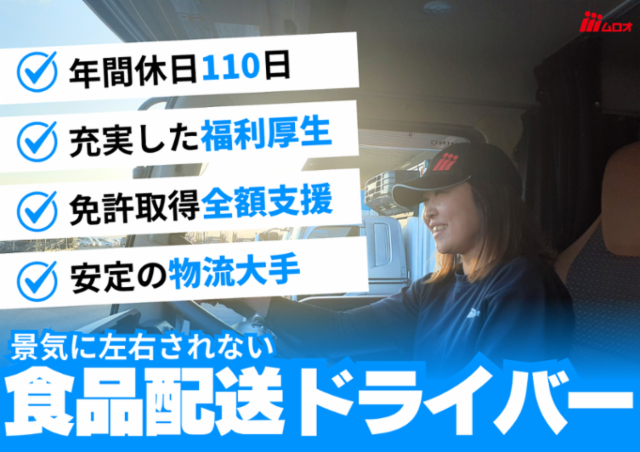 仕事情報 ● 仕事内容 株式会社ムロオ名古屋第2センターで食品配送中型4tドライバー大募集! 中型4t車に乗務し、スーパーやコンビニなどのお店に並ぶ食品を予め決まったルートで配送する業務をお願いします。 配送先は愛知県内、近隣県です。新人乗務員研修からスタートするので安心してくださいね 愛知県内近隣食品配送 株式会社ムロオ名古屋第2センターで正社員中型トラックドライバー大募集!主なお仕事はスーパーなどへカゴ車での配送業務をお願いします。取扱商品は普段皆さんにおなじみのスーパーに並ぶ食品です。予め決まったルートの配送だから毎回不慣れな道を通ることもありません。 はじめやすく続けやすい 24時間稼働しているセンターの為、あなたのライフスタイルや希望に沿った勤務時間を一緒に探すことが可能です。プライベート重視の方にも安心な時間外なしのコースもあります。免許取得支援も積極的に行っているため、異業種からの転向や、未経験の方、ハローワーク求職活動中の方のご応募も大歓迎です♪ ムロオ名古屋第2センター ムロオ名古屋第2センターは、若手からシニアまで幅広い年齢層の社員が活躍しています。確定拠出年金制度や資格取得支援制度家族手当や慶弔見舞金などの福利厚生や待遇も拡充させ、バックアップしています。また、名古屋第2センターでは社員食堂もあります!事業所近くにおいしい飲食店もあり、食の楽しみも万全! 長く活躍できる職場環境! 物流は社会にとって大切なインフラです。中でも食品物流は景気に左右されにくい為、安定した収入を得ることが可能です。株式会社ムロオではお祝金を支給する紹介制度や、資格取得支援制度、継続勤務お祝い金や確定拠出年金制度など、社員の皆さまに長く働いて頂ける職場環境づくりに努めています。