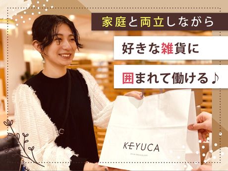 仕事内容 <オープニングスタッフ募集!>『Simple & Natural』がテーマのライフスタイルショップ◎ 店舗責任者の募集です! 一緒にKEYUCAを支えてくれる方を募集しています! <主な仕事内容> ■接客・レジ ■陳列・整頓・ディスプレイ ■ラッピング ■清掃 ■スタッフ管理などの店舗運営業務 「店舗運営の経験を活かしたい」 「接客販売の実務経験を活かしたい」 そんな方をお待ちしています。 ★週1回、新商品の入荷あり! 本社から商品の解説動画が 送られてくるので、 きちんと商品の知識も身に付きます♪ 「新商品をチェックしてたら、自分が欲しくなっちゃって…」 なんてスタッフも…!KEYUCAのスタッフなら、 社員割引を使って真っ先に&お得にGETできます! フルタイムで活躍でき、好きなものに囲まれた環境を用意して ご応募お待ちしております。 KEYUCAについて シンプル&ナチュラルな デザインと機能性にこだわった インテリア・雑貨を販売しています。 自社のデザイナーが手掛けている 機能性や安全性、デザイン性を融合させた商品を ラインナップとし、商品を展開中! 結婚祝いなどの各種お祝いや 母の日・父の日など 名前入りギフトも大人気です*