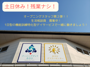 インフォメーション 令和5年夏オープン/土日休み/残業なしで働きやすい/有給取得率高めです ★職場見学受付中★ 新しい施設をぜひご覧になってみて下さい! お仕事内容も1対1でご説明いたします。 気になることやご不安なことがあれば、 何でもお気軽にお尋ねください。 ご納得いただいてからの面接希望が可能です。 ※履歴書は面接希望の方のみ ※服装自由 アピールポイント “働きやすく あったかい” 仕事のひと段落でホッとできるような 職場にしたいとみんなが思っています。 難しいことはありません。 ただ入居者様の立場で「見つめて」「考えて」 「行動して」いくだけ。 もしあなたが理想とする介護ができる場を探して いるなら、ぜひ私たちの元で実現させましょう。 新たな一歩を踏み出すなら、今がチャンス! 【オープニング】【採用内定率が高い】