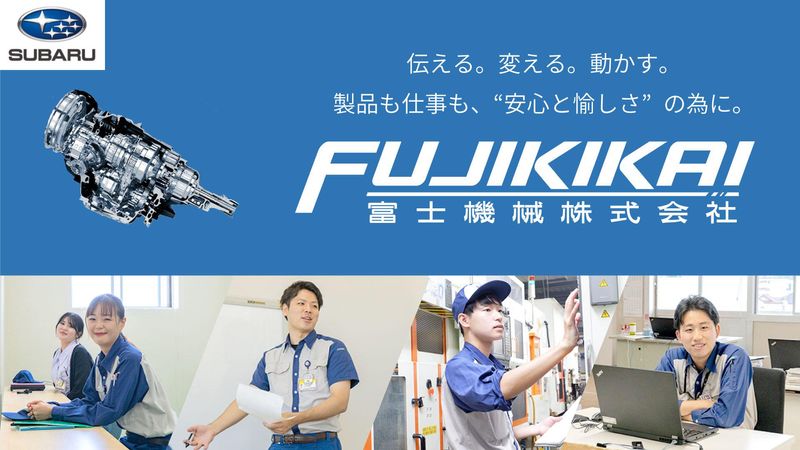 仕事内容 伝える。変える。動かす。 製品も仕事も、 “安心と愉しさ” の為に。 私たち富士機械は、SUBARUグループの一員として、自動車機能部品や産業機械部品の開発から製造を担うメーカーです。 【仕事内容】 開発設計、生産技術 ●トランスミッション(MT、AT)などの駆動装置部品 ●ハイブリッド車用電動モーターケース ●CVT(無段変速機)用オイルポンプ部品 ●アクスル・ギヤモーターなどの産業機械用部品