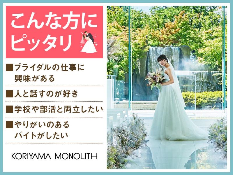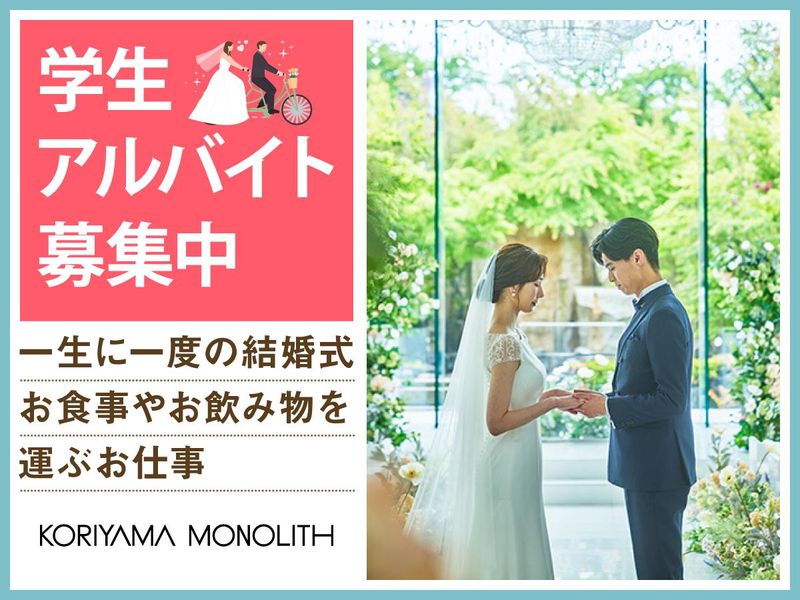 仕事内容 ✅授業やサークルのない日に勤務OK★ ✅週1~の柔軟シフト!Wワーク・副業OK! ✅学生スタッフ多数活躍中!新入生も歓迎! 「人が喜ぶ姿が好き」「サプライズが好き」 という方必見!スキルや経験は一切不要♪ 一緒に素敵な結婚式を演出しましょう* - 電話での応募や問い合わせだけも大歓迎! ⇒【TEL:024-927-5517】まで お気軽にお電話ください♪♪ - <主なお仕事内容は…> ■会場の準備 ■お客様の上着や荷物のお預かり ■お席のご案内 ■結婚式のお料理・ドリンク提供 ※キッチン業務はありません◎ ―――――――――――――――― 学生さんが活躍中! オススメポイントはこちら★★ ―――――――――――――――― ・週1日~1日4時間~OKで融通◎ ・かけもち・副業OK! ・同世代が多くて安心◎ ⇒春からの新大学生の方も歓迎! まかないは本格料理人たちが 美味しい食材を使って作ってくれます♪♪ 現在はアルバイト・パート25名が在籍中! そのうち学生15名が活躍しています! お友達同士の応募も大歓迎です! 敷居が高いイメージがあるかもしれませんが みんなで協力しながら準備して… 毎日、文化祭みたいな雰囲気なんです♪ 素敵な仲間に出会える そんな場所になると思います◎ ついでに… 社会で活躍するためのマナーも学べますし、 実は就活に役立つのもうれしいポイント! ―――――――――――――――― 具体的な仕事の流れは? ―――――――――――――――― ▶STEP.1 ミーティング 披露宴の流れやお料理について スタッフ間で事前に確認して 式中にバタバタしないようにします◎ ▶▶STEP.2 披露宴会場の準備 お席に置く名札や ゲストの方に渡す引き出物を確認したり グラスを磨いたりして準備します。 ▶▶▶STEP.3 お客さまのお出迎え 荷物をお預かりし、 待合室でドリンクをお出しします! ▶▶▶▶STEP.4 ホール業務 お席にご案内し、順番にお料理や ドリンクを提供します◎ ―――――――――――――――― 未経験者歓迎! みんなで助け合う雰囲気です ―――――――――――――――― 最初は結婚式の見学からスタート! 見学後は本番じゃないところで、 同世代を集めて研修を実施。 飲食業やホールスタッフが 初めての子には、 お盆の持ち方から教えます!