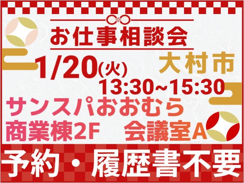 選考プロセス WEB・電話応募どちらも可!WEB面接OK ☎0120-68-2209 ■応募⇒面接⇒採用 ※応募~最短3日間で入社可! ※応募に相談会の参加は必要なし 【お仕事相談会】 ※予約&履歴書不要!服装自由! ※希望者のみ事前説明いたします *1/20(火)13:30~15:30 【大村市】サンスパおおむら商業棟2F 会議室A *2/5(木)13:30〜15:30 【長崎市】メルカつきまち5F A1会議室 ―――――――――――――――――― 「日程が合わない…」という方もOK! 長崎事業所(諌早市栄田町)で随時、 お仕事のご紹介が可能です! まずは、お気軽にご相談ください! ――――――――――――――――――