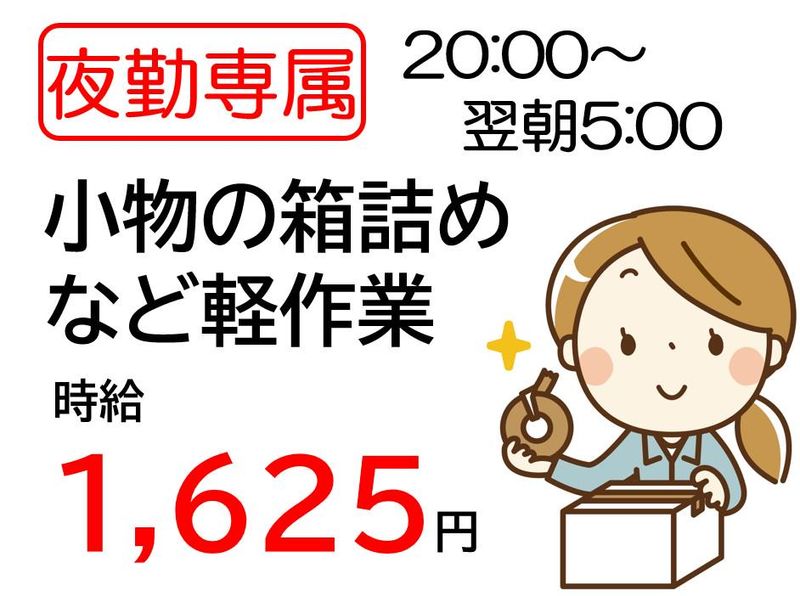 夜勤専属カンタン軽作業!当社派遣スタッフも多数活躍中の職場