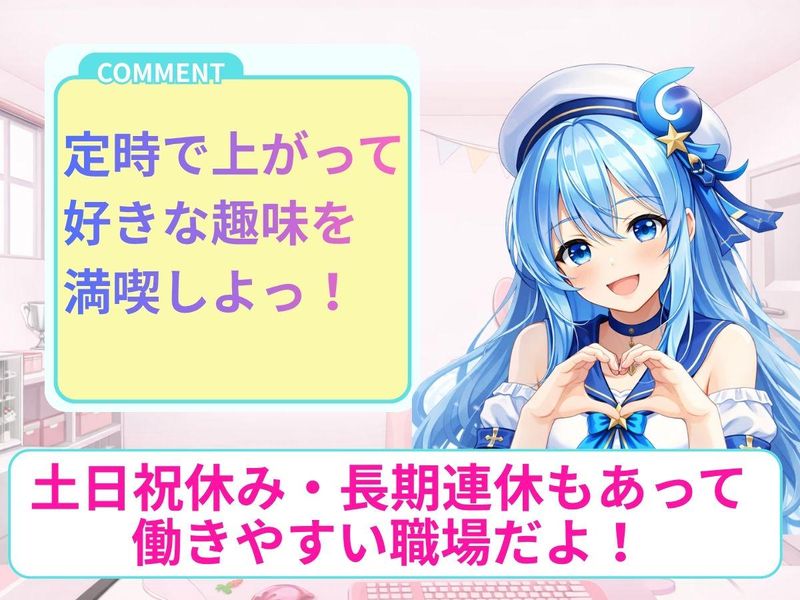 勤務時間詳細 ⏰08:30~17:15 (実働7時間45分/休憩60分) *月~金で週5日勤務