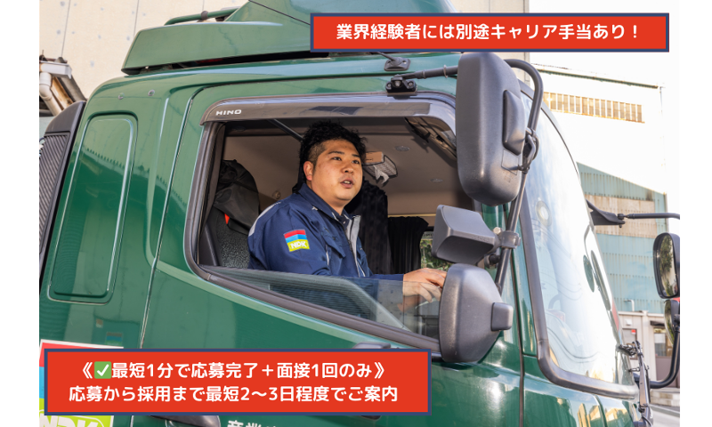 仕事内容 あなたの業界経験を キャリア手当(上限5万円)に変えませんか? =================== このお仕事の特徴は... ✅完全週休二日制・年間休日127日(2026年度)! ✅学歴・年齢不問!経験を活かして即戦力に! ✅キャリア手当・経験を活かして収入UP! ✅残業ほぼなし!定時でサクッと退勤! ✅夜勤なし・長距離なしで負担少なめ ✅賞与2回!年収500万円以上も可能! ✅創業以来54期黒字経営/安定のNDKグループ =================== 【仕事内容】 4tパッカー車を運転し、 工場や物流センター、研究所などから 産業廃棄物の回収・運搬を行います。 ❍[主な回収物] 廃プラスチック類、木くず、金属くずなど 廃棄物回収なので、積荷に気を使う必要なし! パッカー(巻き込み)車なので、積み込みも楽! ❍[回収エリア] 神奈川県内、東京都内がメイン 1日の訪問件数は平均3〜4件です。 〈入社後は・・・〉 経験に応じて、 業務の引き継ぎもスムーズに対応します。 一通り把握いただいた後は、 独り立ちしてご自身のペースで ご活躍いただけます。 自分の空間で業務に 集中したい方にも向いています。 〜1日の大まかな流れ〜 07:00:出社、現場に出発 ↓ 09:00:1件目の工場で積込み 10:30:処理工場に搬入 ↓ 12:00:お昼休憩 13:00:2件目の工場で積込み ↓ 14:30:処理工場に搬入 ↓ 15:30:3 件目の工場で積込み ↓ 16:30:自社工場に搬入 17:00:終業点検、作業終了 お疲れ様でした! =================== 【当社で働く魅力ポイント】 ✅<完全週休2日制/年間休日127日> プライベートの時間を しっかり確保できる環境です。 平日・休日のリズムを保ちながら働けます。 ✅<夜勤・長距離なし&残業少なめ> 夜勤や長距離運転はなく、 残業も最小限に抑えられる体制。 長く続けやすい勤務環境です。 ✅<キャリア手当や賞与あり> 年2回の賞与や、 キャリア手当などの制度があり、 これまでの経験を収入面でも しっかり活かせる職場です。 ✅<地域密着で転勤なし> 地域に根ざした事業展開をしており、 転居を伴う異動はありません。 「地域の活性化に寄与して働きたい」 「地元で腰を据えて働きたい」 そんな方にぴったりの仕事です! 当社では働きやすさと安定性の両立を目指し、 制度面・職場環境の見直しや 改善を継続的に行っています。