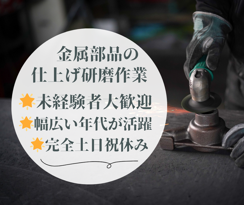 燕市/日勤/完全土日祝休み/未経験歓迎/交通費別途支給/JOBPAY対応/金属部品の仕上げ研磨作業