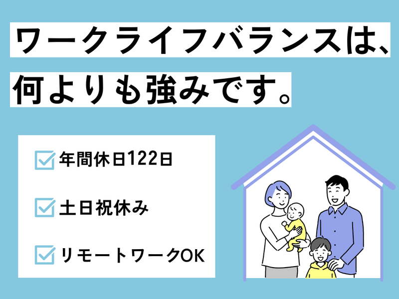 休日休暇 ★年間休日122日★ ・完全週休2日制(土日祝) ・GW ・年末年始休暇 ・有給休暇 ・誕生日休暇 ・フリーホリデー(年1回︓連続して最大3日間取得可能) ・慶弔休暇