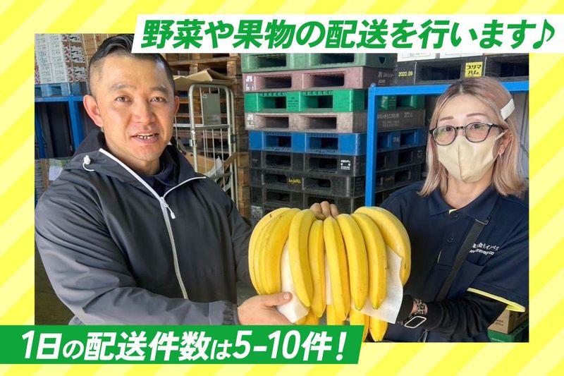 仕事内容 ⭐…――――――――――――――――― 未経験OK!20代・30代多数在籍✨ 事業拡大のため、若手採用強化中♪ ―――――――――――――――――…⭐ < 簡単業務&1日3,4件で負担少なめ > < 日勤のみ/週2日~サクッと勤務 > < 即日可!働き方の調整&相談OK > < 髪型・髪色自由でオシャレも"◎" > < 社員登用ありでキャリアUPも可 > < 面接は雑談ベースなのでお気軽に > 【 お仕事について 】 ~ 自由×やりがい ~ 「ただ運ぶだけ」じゃない。 毎日の食卓を支える“縁の下の力持ち”。 お任せするのは… ✅ 野菜の積み込み(箱詰め済) ✅スーパーなど取引先への配送(1日3,4件程度) ✅車の荷台や倉庫の清掃と翌日準備 など、むずかしい作業は一切ナシ! 簡単でスグにできるお仕事です! 意欲&あなたの人柄で採用するので ドライバーデビューの方も大歓迎♪ 最初の1~2週間先輩スタッフが同乗して しっかり教えます✨ 丁寧にサポートするのでご安心ください! ▼▼▼ 1日のスケジュール例 ▼▼▼ 6:00 出社後、荷物をおろして車の準備 ↓ 6:30 段ボールに入った野菜を 車の荷台へ積み込み ↓ 7:00 スーパーへ野菜を配送 ↓ 13:00 休憩は好きなタイミングで 1時間取得可 ↓ 16:00 帰社後、車の荷台や倉庫を清掃 翌日の準備をして終了 ▲▲▲▲▲▲▲▲▲▲▲▲▲▲▲▲▲▲ ================ ワークライフバランス重視♪♪ ================ 希望申告制シフトで働きやすさ抜群 働きやすさに定評あり!! 現在活躍中のスタッフからも 「曜日が選べてWワークしやすい!」 「無理なく働けてストレスフリー◎」 なんて声もあがっています♪ ⭐週2日~OK ⭐勤務曜日などの相談可! ⭐希望休も気軽に教えて下さい ⭐1日3件~4件の配送でOK ⭐カンタンなお仕事 ⭐即日勤務可 ライフスタイルに合せて 働き方を調整できるので 無理せずに自分らしく働こう♪ \ 面接はリラックスしてお越し下さい / 時間は10~15分程度と短め! 先輩スタッフと希望の働き方など 雑談ベースでお話ししましょう♪ 服装・髪型・髪色も自由なので そのままのアナタで大丈夫◎ 気負わずにフランクにお話しましょう!