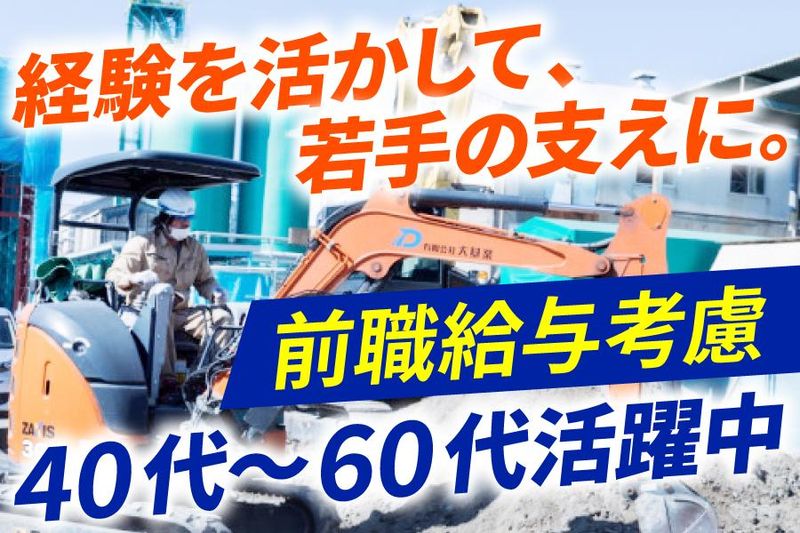 仕事内容 街を作り、基礎を築く。 あなたの経験が鍵になる \60代などのシニア層の方もご活躍いただけます/ 【土木作業 経験者 募集】 ■現場での残業ほとんどなしでプライベート充実 ■資格取得支援あり/スキルアップ可能! ■知多半島を中心とした周辺地域 \あなたの経験が活きる職場!/ ▶電話応募もOK! ▶60代などのシニア層の方もご活躍いただけます!これまでの知識や技術を活かしながら、無理なく働けるようサポートするのでご安心ください。 ▶▶土木作業員 経験者 募集! 知多半島の武豊町エリア中心の、建築基礎工事・外構工事に力を注いでいる会社です。 【前職給与も考慮した給与設定】 経験を最大評価!未来へのステップをサポートします。 【具体的には】 ■重機の手元作業 ■重機作業(資格取得後) ■鉄筋の加工や組立 ■簡易な型枠の作成や組み立て ■コンクリート打設作業や仕上げ作業 ■各種清掃 ■作業準備および片付け など、体力に合わせて無理なく働けるよう業務をお任せします。経験を活かしながら、若手スタッフの指導役としても活躍できます。 ================= 地元で安心して働ける! ================= 現場は会社から近いので、移動の負担も少なめ。現場での残業も、ほとんどありません(月3~5時間程度)。 仕事終わりの時間を有効に使い、家族との時間や趣味を楽しむことができます。 =================== 安定した仕事量で安心! =================== 長年の実績があり、仕事が途切れる心配はありません。信頼を築いてきたおかげで、多くのお客様からお仕事をいただいています。 そのため、給与や待遇もしっかり整えており、安心して働ける環境を提供しています。 \\福利厚生も充実!// 給料日には、ちょっとした季節の品をプレゼント。社員やご家族からも「楽しみが増える!」と喜ばれています。 また、社長やスタッフ同士の距離が近く、何でも相談しやすい環境。長く働きたい方にピッタリの職場です。 ===================== ご応募お待ちしております! ===================== \シニア層の方も活躍/ 「子どもも独立して一息ついた」 「定年退職をしたが、まだまだ働きたい」 「経験を活かしてムリなく働ける職場を探している」 そんな方にピッタリ!ぜひ一緒に働きませんか?あなたのご応募を心よりお待ちしています! \HPでさらに詳しく紹介中/ 【大基業 採用】で検索 ご応募お待ちしております! 【求人ID-GNS】