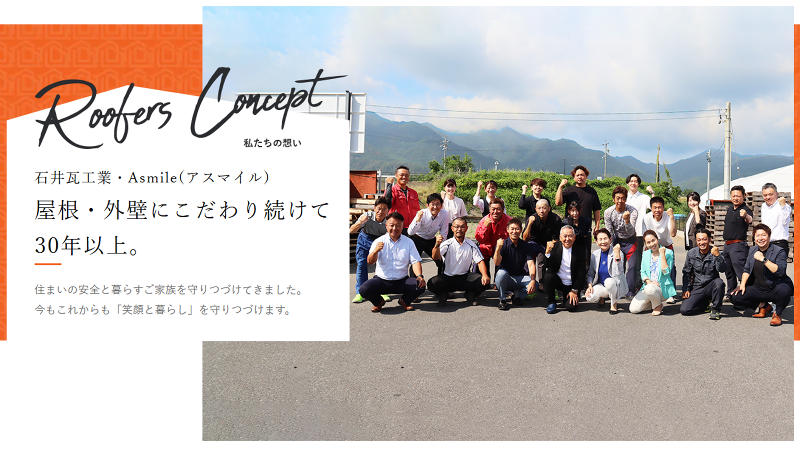 選考プロセス ①応募 ↓ ②書類審査 ↓ ③面談/1回 ↓ ④採用 当社では社員の健康と安全を 何よりも大切にしています。 「健康経営優良法人」にも認定◎ 無理なく、長期で働けるような 環境を大切にしています。 HPもご覧ください。 https://www.ishii-roofers.jp/ TEL:026-275-5138