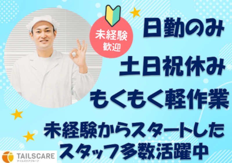 仕事内容 スーパーやコンビニなどでよく見かける 「昆布のお菓子」をつくる食品工場でのお仕事です。 難しい機械操作はなく、 決まった手順通りに進める「製造補助」を担当していただきます。 <お任せする作業は3ステップ> 以下のいずれかの工程をサポートしていただきます。 ✅味付けの補助 昆布に味をつける工程のお手伝い。 調味液の準備や、材料の投入サポートなどを行います。 ✅乾燥した昆布を干す・並べる ✅仕分け・片付け 仕分けや、作業場の清掃・片付けなど、 【このお仕事のポイント】 ✅シンプル作業が中心 「同じ作業をコツコツ繰り返す」業務がメインです。 接客や電話対応は一切ありません。 ✅未経験でも安心のサポート体制 最初は道具の使い方や手順を丁寧にお教えします。 食品工場が初めての方も多数活躍中です。 ✅日勤のみ&残業ほぼなし ✅土日祝休み+長期休暇あり アクセス方法 ・広電「商工センター入口」駅から徒歩約12分 ・JR「新井口」駅から徒歩約15分 ・アルパークからも徒歩圏内でアクセス便利 ⏩ 車通勤:不可 ⏩自転車・バイク通勤:OK ALL KR