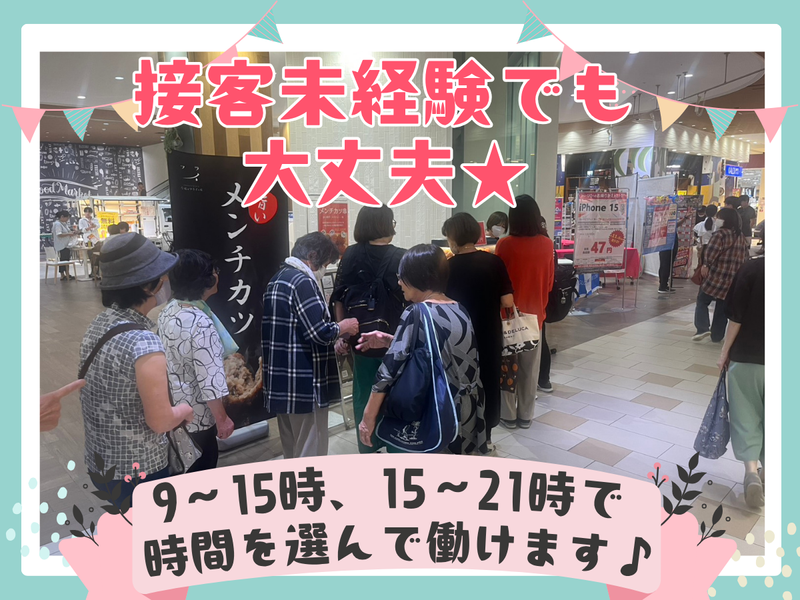 職場環境 学生・主婦(夫)・Wワーカーさん活躍中!未経験でも丁寧にサポート◎明るく和やかな雰囲気の職場です♪店舗も催事先も活気にあふれています! 喫煙所:なし(敷地内全て禁煙)