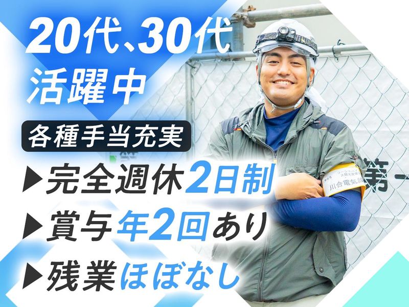 仕事内容 ━━━━━━━━━━━━━━━━━━━━━━━ 「街の明かりを灯す」仕事、 真面目にコツコツ継続できるあなたへ ━━━━━━━━━━━━━━━━━━━━━━━ ▼こんな方におすすめ ◎未経験から手に職をつけたい方 ◎安定した業界・公共事業に関わりたい方 ◎コツコツ作業するのが好きな方 ◎チームで働くことが好きな方 ◎正社員として長く働きたい方 \この仕事の魅力/ ◇入社祝い金5万円支給! ◇完全週休2日制&土日祝はお休み ◇繁忙期以外は残業ほぼなし ◇賞与年2回あり◎日々の頑張りを評価 ◇ 固定給が毎年上がる安定収入 ◇ まずは2年、現場の基礎をじっくり学べる安心育成体制 ▼業務内容 東京都・狛江市を中心とした公共施設や学校、 マンションなどの電気工事を担当します。 配線・照明設備・電源工事など、“街のインフラ”を支える仕事です。 入社後は、まず先輩スタッフと一緒に現場を回り、 工具の名前や使い方、作業の流れをひとつずつ覚えていきます。 最初は先輩スタッフと一緒に作業を進めるので、 未経験の方も安心してスタートできます。 2年ほどかけて現場の基礎を習得し、 5〜10年かけて一人前を目指していく長期的な育成スタイルです。 >>具体的な業務例 ―――――――――― ■公共施設や学校、マンションなどでの電気設備工事 ■新築物件における配線・照明・電源設備の設置 ■既存建物の改修やメンテナンス ■高圧受電設備から一般家庭用の低圧工事まで幅広く対応 >>将来的には… ―――――――― 当社は設計・施工・施工管理まで 一貫して手掛ける体制を整えています。 そのため、経験を積むことで… ■現場で技術を極める「プロの職人」 ■チームをまとめる「施工管理・監督」 ■独立して活躍する「パートナー」 など、あなたの希望や強みに合わせて さまざまなキャリアを描くことができます。 ▼おもしろさ・やりがい ■建物全体をまるごと担当できるスケールの大きさ ■自分の手で「街に明かりを灯す」達成感 ■毎年昇給!努力が形になる成長実感 ※大手の下請けではなく、建物全体を任される案件中心です。 ▼大変なこと どんな方でも、一人前になるまでに5年はかかる仕事です。 だからこそ、コツコツと積み重ねができる人、 継続して取り組める人が活躍しています。 「社長や先輩がしっかり見て育ててくれる環境」なので、 焦らずに一歩ずつステップアップできます。 ▼将来のキャリアパス 経験を積んだ先には、 ■現場で活躍する電気工事のプロ ■現場をまとめる施工管理・監督 ■将来的な独立・パートナーとしての活躍 など、あなたに合った道を選べます。 ..━━━━━━━━━━━━━━━━━ もっと会社の雰囲気を知りたい方へ ━━━━━━━━━━━━━━━━━.. 当社について さらに詳しく知りたい方は、 ぜひホームページもご覧ください! ⇒ https://www.kotonear.com/kawaidenki-recruit/
