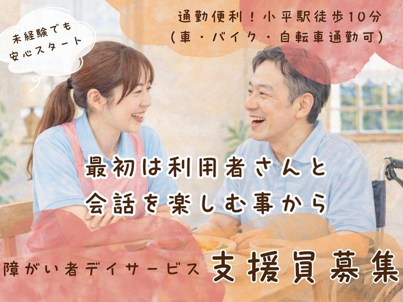 仕事内容 \人と話すことが好き、それだけでOK/ 未経験から始める福祉の仕事|平日のみ×残業なし ■仕事内容 障がい者デイサービスにて、 利用者様の生活支援・見守りを行うお仕事です。 「介護=大変そう」と思っている方もご安心ください。 当施設は未経験スタートが9割以上です。 ▼具体的なお仕事内容 ・利用者様の見守り ・会話やコミュニケーション ・レクリエーションのサポート ・食事や活動の見守り ・簡単な生活支援(軽作業など) ※いきなり介助はありません ※身体介助は慣れてからでOK ■ポイント ◎未経験・無資格OK 介護・福祉・デイサービス未経験歓迎 飲食・接客・販売からの転職者多数 ◎土日休み×残業なし ・平日のみ勤務 ・9:00〜17:00 ・家庭と両立しやすい →主婦(主夫)・子育て世代に人気 ◎時短勤務OK ・10:00〜17:00 ・9:00〜16:00 など柔軟に相談可能 ◎パートでも賞与あり 年5万円〜10万円支給実績あり →アルバイト・パートでも安定収入 ◎キャリアアップ可能 資格取得支援あり 正社員登用あり パート → 正社員 → 管理職の実績あり ■こんな方におすすめ □人と話すことが好き □未経験から介護・福祉に挑戦したい □家庭と両立したい □ブランクがあるが仕事復帰したい □社会貢献できる仕事がしたい