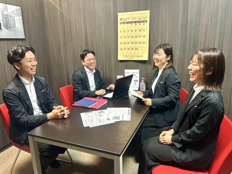 職場環境 30代~40代が中心の職場です。 質問や話しかけやすい雰囲気の社内ですから、 オフィスワーク自体が久しぶり という方もスムーズに慣れて頂ける環境です。