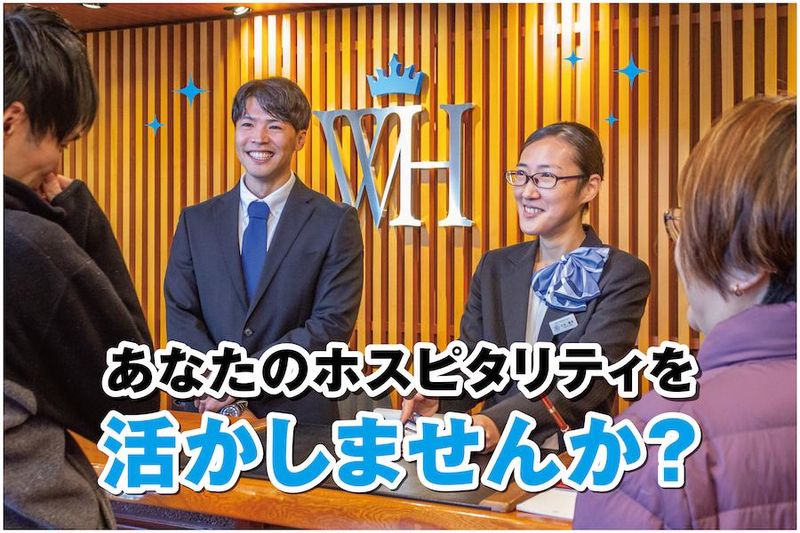 求めている人材 <必須条件> ・簡単なPCスキル(タイピングできる程度) <こんな方にピッタリです!> ・人と話すのが好きな方、 笑顔での対応が得意な方 ・ホテル、旅館、飲食店などでの 接客・販売経験がある方 ・学歴・経験不問(人柄重視の採用です) ・未経験やブランクのある方も歓迎 ・20〜40代の若手/中高年が中心に活躍中 ・地元で安定した仕事を探している方 ・観光地で働きたい方 ・お客様との会話を楽しみたい方 ・仲間と協力しながら 新しいホテルを創っていきたい方 ・英語を少しだけ話せるようになりたいと考えている方 ・TOEIC650点あれば尚可(なくてもOKです!) Required: Permanent Resident Native fluency in Japanese (reading, writing, and speaking) TOEIC over 650 Āvedanko yogyatā: vā Sthāyī Basobās Anumati (Permanent Resident) bha'ekā vyaktiharū.