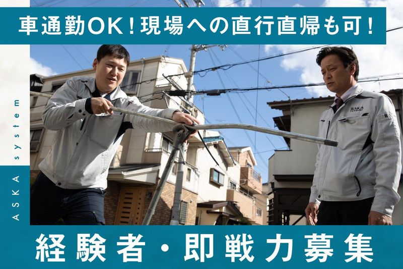 職場環境 \\会社は香里園駅より徒歩12分// ▶車通勤や現場への直行直帰もOK! スキルアップを叶える 会社の制度も充実しておりますが、 それだけでなく、 経験豊富な先輩による 指導・サポートも充実しています◎ みんなで切磋琢磨しながら 成長していける会社です!