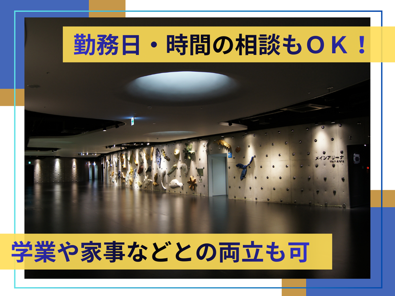 求めている人材 \ 経験・資格不要! / ⭐未経験大歓迎 \こんな方にオススメ!/ ●接客・販売経験がある方 ●土日祝勤務できる方 ●学業や家事・育児と両立しながら働きたい方 ●フルタイムでしっかり稼ぎたい方 ✨大切なのは笑顔と元気! 公共施設をご利用いただくお客様をサポートしていただきます。 大切なのは、コミュニケーション力。 スポーツの経験や知識よりも人柄を重視します。 明るい笑顔と元気な対応でお客様と接することができる方をお待ちしています。